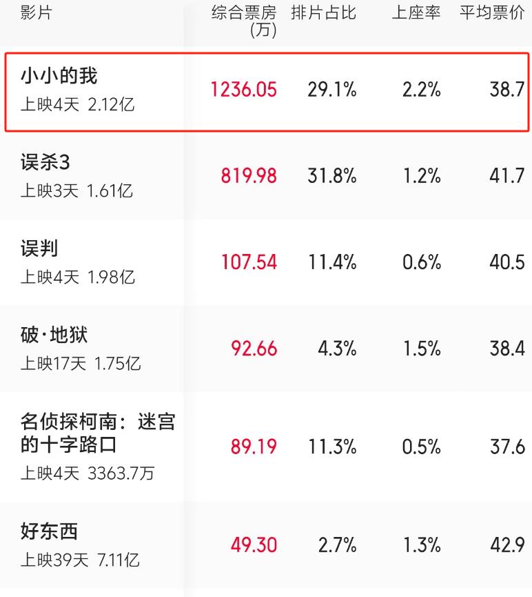尽管目前仍领跑票房排行榜首位,但对于一部好电影而言,口碑同样重要。因此,在当前情况下,《小小的我》能否继续保持领先地位还存在不确定性。